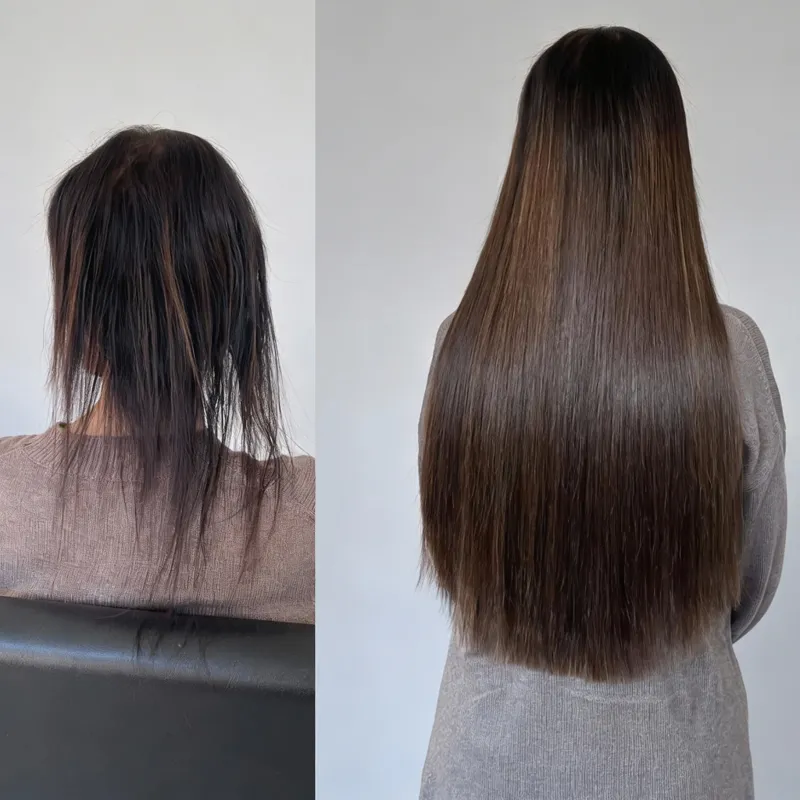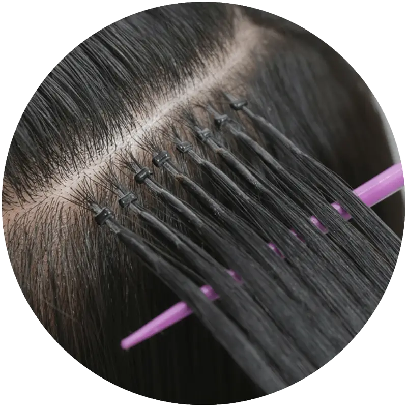 I-Tip extensions are applied strand by strand using micro rings, without heat or adhesive, allowing natural hair to grow freely.